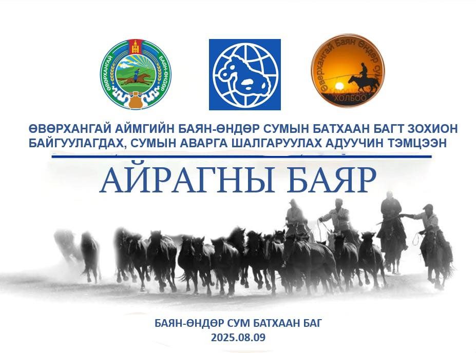 Баян-Өндөр сумын Батхаан багт зохион байгуулах Адууны баяр, Сумын Аварга шалгаруулах Адуучин тэмцээн 2025 оны 08 сарын 09 ны Бямба гарагт Батхаан багийн төвд болно.