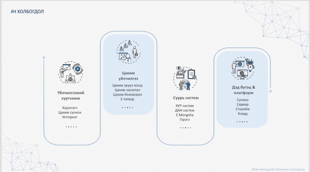 Гуравласан үйлчилгээ нь суурин утас, интернэт, телевизийн төхөөрөмж гэсэн хэсгээс бүрдэх бөгөөд тавиулах иргэд гэрээ хийж төхөөрөмжөө ашиглана.
