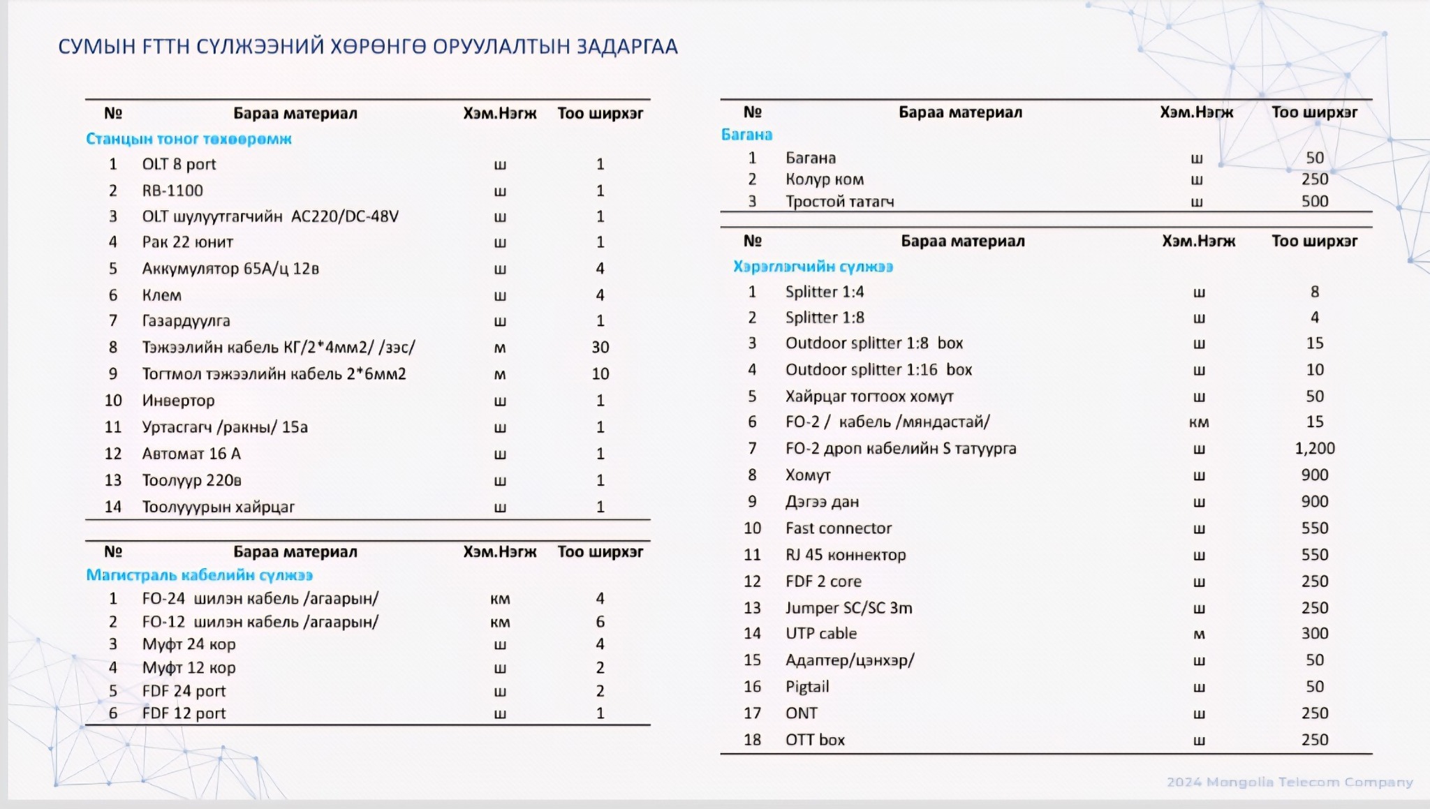 Монголын цахилгаан холбоо ХК-ны гурвалсан үйлчилгээг энэ оны 10 дугаар сард багтаан суманд нэвтрүүлэх гэж буй тул захиалга авч байна.
