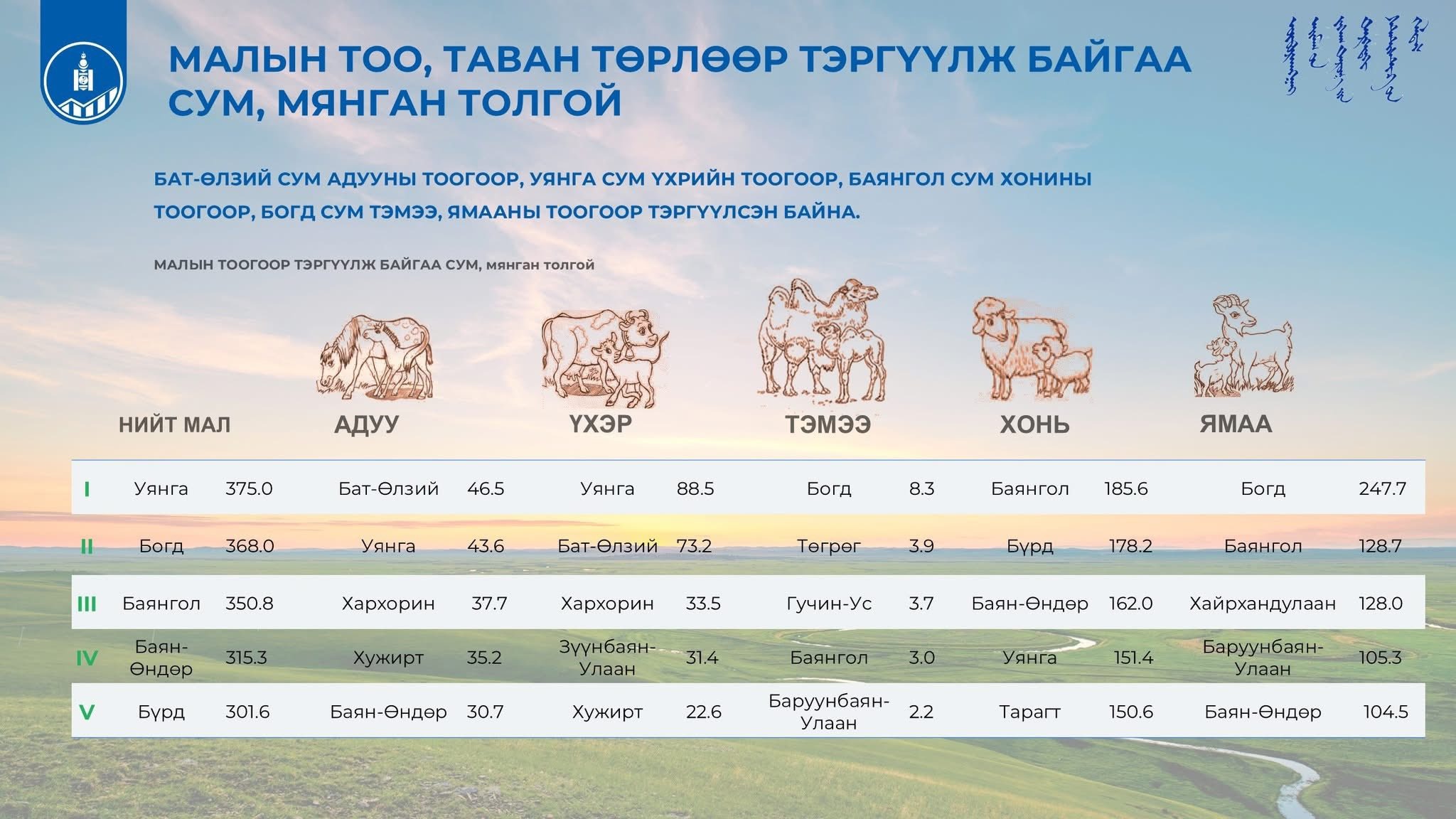 Таван хошуу малын төрлөөр сумандаа тэргүүлсэн өрхүүд: